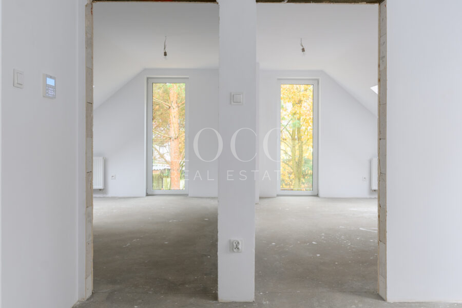To dom o powierzchni niemal 140 m² w stanie deweloperskim, położony na pięknej, zadrzewionej działce o powierzchni 1500 m². Dom gotowy jest aby wykończyć go zgodnie z własnymi preferencjami i stworzyć swoją wymarzoną przestrzeń do życia.