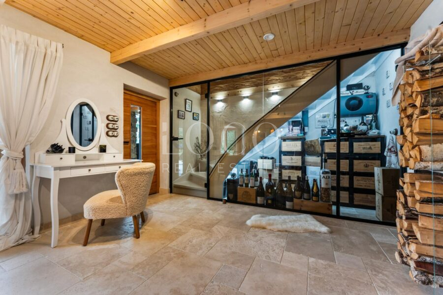 Głównym atutem oferty jest olbrzymi teren, na którym aktualnie stoi dom charakteryzujący się tradycyjną beskidzką architekturą. Wykonany z dbałością o każdy detal. Willa (300 m2) to przede wszystkim przestrzeń – każda kondygnacja ma ok. 100 m2. Centralną część domu stanowi przestrzeń z kominkiem, pokojem dziennym oraz strefą gdzie po otwarciu okien frontowych można cieszyć się górskim powietrzem i niesamowitym, zapierającym dech w piersiach widokiem. W tej części domu miłośnicy celebracji, wykwintnych potraw i wina mogą cieszyć się doskonale wyposażoną kuchnią oraz częścią jadalnianą, do której przylega również część z nowoczesnym grillem gazowym. Zadbano również o przestrzeń do pracy z nowoczesnym biurkiem i biblioteczką.