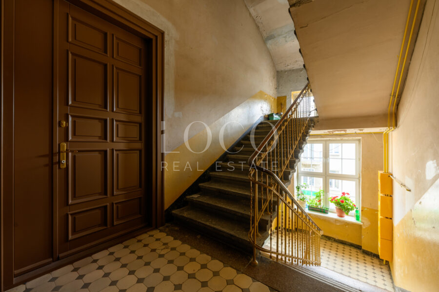 Mieszkanie znajduje się na czwartym piętrze (brak windy) we frontowym trakcie kamienicy. Znajdziemy tu przestronny przedpokój z szafą w zabudowie, przytulną sypialnię z szafami oraz gabinet z szafą — to pokój przejściowy idealnie wydzielony do pracy zdalnej lub jako strefa czytelnicza. Dalej, łazienka z prysznicem i osobna toaleta. Jasny salon połączony z kuchnią – stąd wyjście na balkon z którego rozpościera się widok na cichy dziedziniec. Dzięki południowej ekspozycji okien wnętrze doświetlone przez cały dzień.